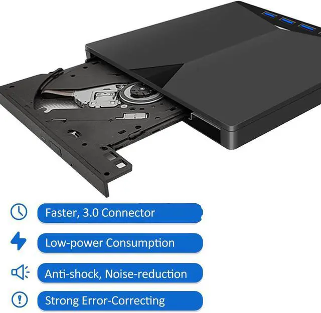 Faster USB 3.0 /Type-C: Use low-power technology, this external optical drive is powered and data transmission by USB 3.0 / Type-C cable.