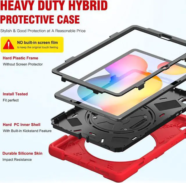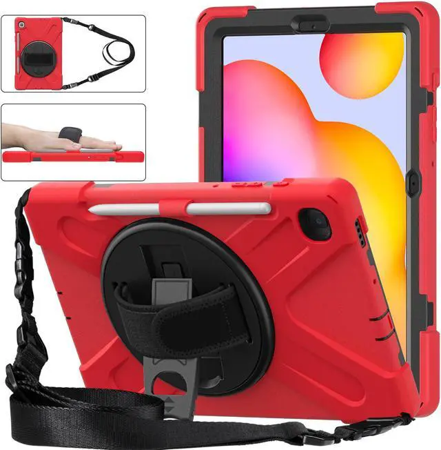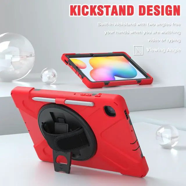 Multiple Angle Viewing: Stand function will fold horizontally as a versatile stand to enjoy typing, emailing, gaming or video watching. Make you hands free. Case for Samsung Galaxy Tab S6 Lite 10.4 inch with [Build-in Pencil Holder] Full-Body Heavy Duty Rugged Rotating Stand Cover Case with Shoulder Strap,Hand Strap