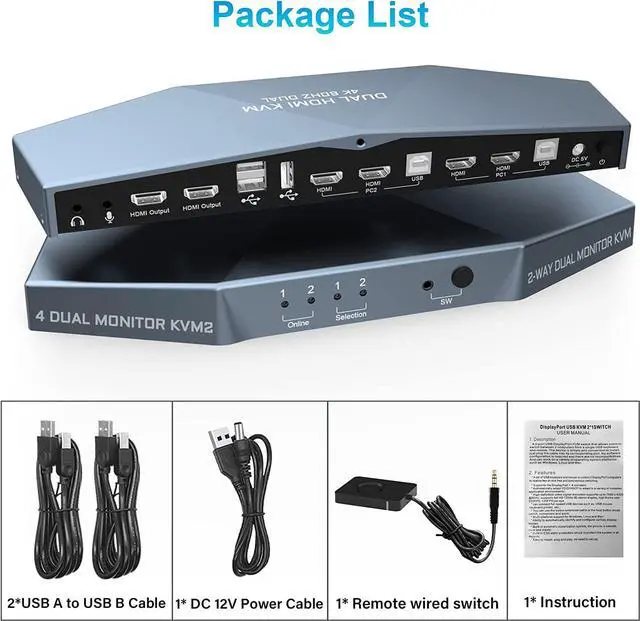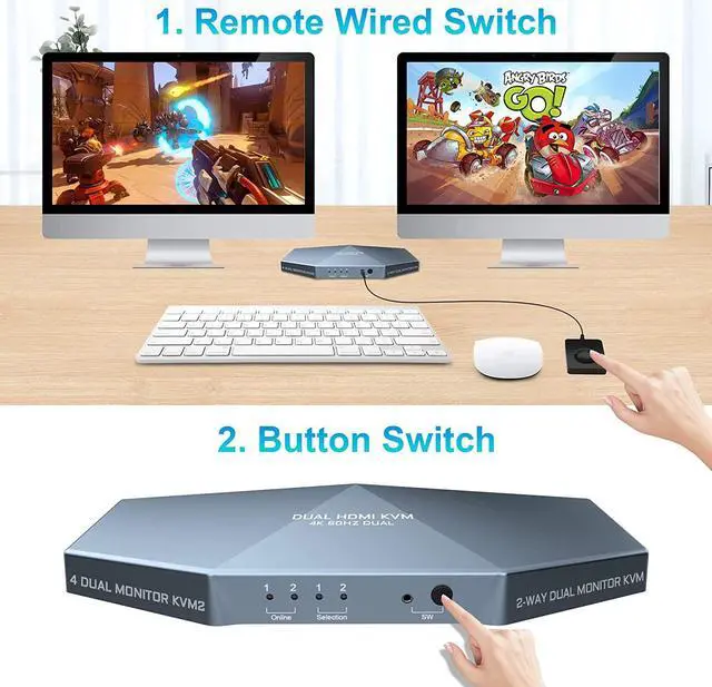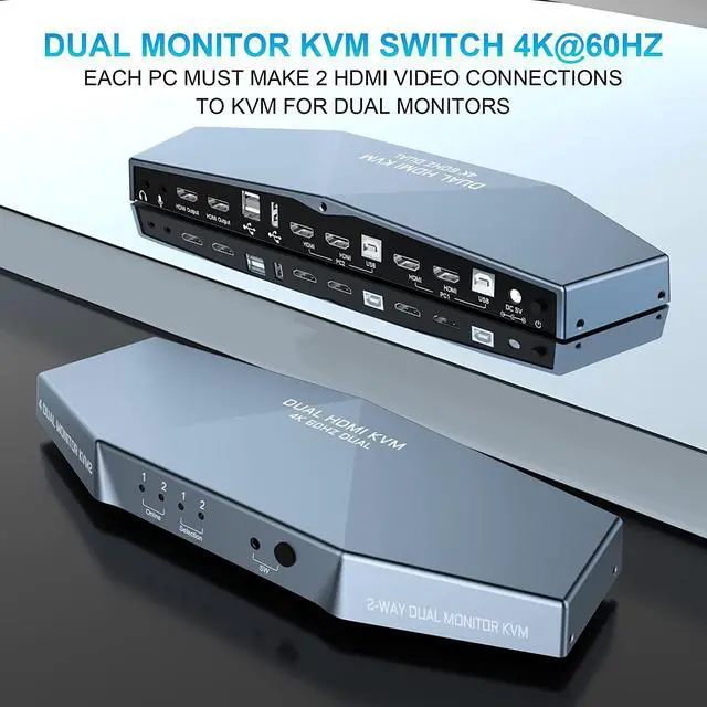 2 Port Dual Monitor KVM Switch HDMI 4K@60Hz