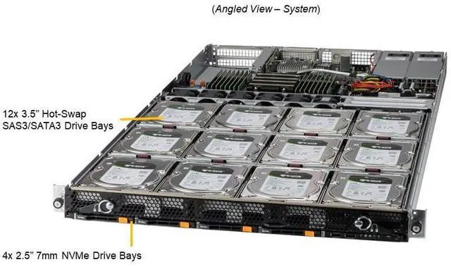 5. 12x 3.5" SAS3/SATA3 Hot-Swap Drive Bays, 4x 2.5" 7mm U.2 NVMe Hot-Swap Drive Bays