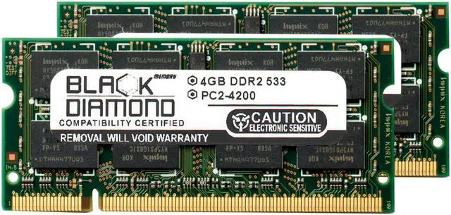 8GB Kit (2x4GB) DDR2 533 (PC2-4200) SODIMM Memory 200-pin (2Rx8) compatible with desktop/laptop from Apple, Dell, Fujitsu, HP, IBM, Intel, Lenovo, Sony, Toshiba, Acer, Asus, MSI, etc.