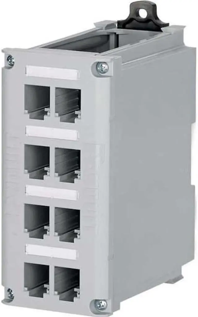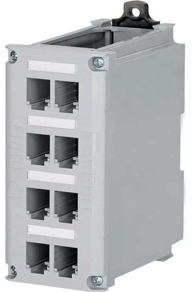 IndustrialNet Mini-Com 8-port DIN Rail Shielded Patch Panel - 8 Port(s) - 8 x RJ-45 - Light Gray - DIN Rail Mountable