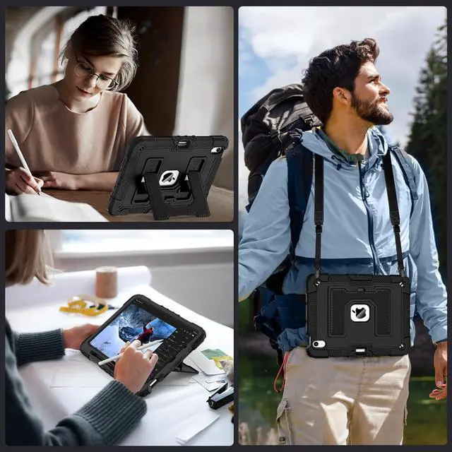 Upgraded Strong Stand --- 1- iPad case built-in reinforced kickstand offers two angles for viewing and typing,easy access to your favorite movies, games, or work at any time. 2-This innovative stand ensures a stable, sturdy support for iPad that won't tilt or slide during use, providing the most reliable stability and a longer lifespan. 3- Easy-to-grab bump design is more friendly to everyone,convenient to carry and use,unique and professional design brings your ipad a stylish new look and full protection!