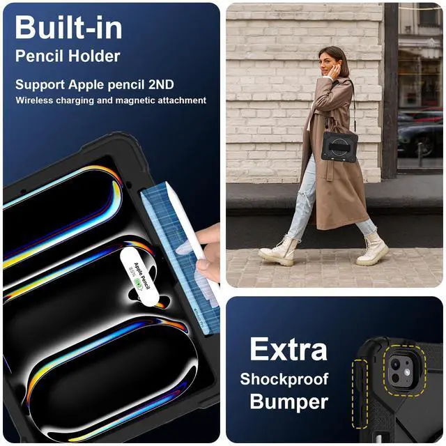 • Only Compatible with iPad Pro 13 Inch M5 2025 / M4 2024: This case is Only designed for iPad Pro 13 inch (M5) 2025 (Model: A3360/A3361/A3362), iPad Pro 13 inch M4 (7th Generation) 2024 (Models: A2925/A2926/A3007) .NOT compatible with any other model devices. Note : WITHOUT Built-in Screen Protector!
