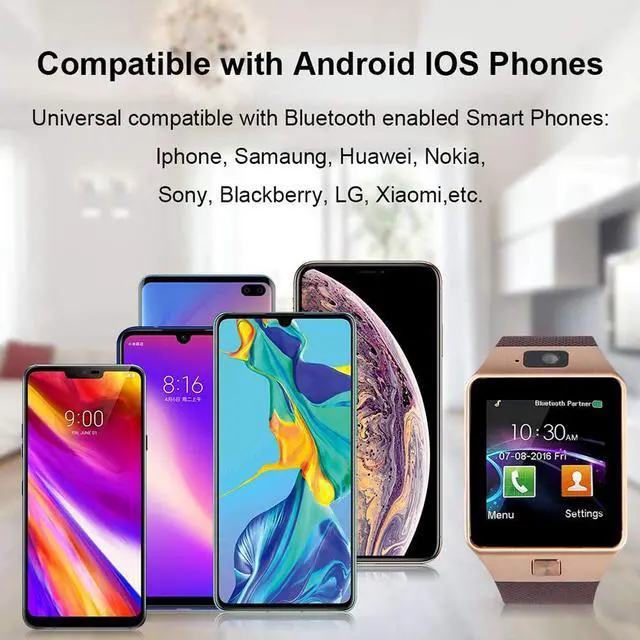 850/900/1800/1904 MHz Compatible with Android System and IOS System(Please note functions is limited for IOS system. For iphone, it just support answer & call, phone book, music play, camera, clock, pedometer, phone anti-lost alert. Still not support SMS, Radio, remote camera control, etc. ).