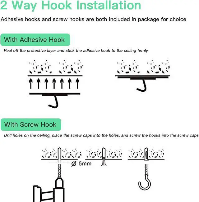You can choose to attach the hooks to the ceiling with sticky pads or with screws as you like. Then fix your VR cables to the cable holders of the retractable carabiners and put the carabiners to the ceiling hooks. And it is all done.