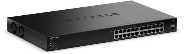 | Package Contents | GS324TPv2 Ethernet Switch Power Adapter Power Cord Rackmount Kit Rubber footpads for tabletop installation Download Center Sheet (QR code) |
