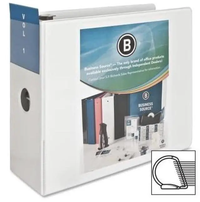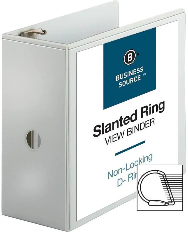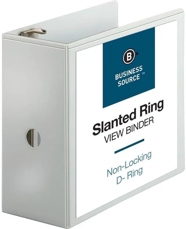 Basic D-Ring View Binder offers a clear, nonglare overlay on the front, back and spine for easy customization and identification. Slant-D rings hold 25 percent more paper than traditional binders. Back-mounted metal rings allow pages to lie flat. Two triggers on the ring mechanism provide easy access to your documents. 5" capacity holds up to 1,100 sheets. Clear pockets on the inside covers offer extra document storage with a 30-sheet capacity for each pocket. Design also features a sturdy chipboard core and exposed rivets. Three-ring binder is made of polypropylene.