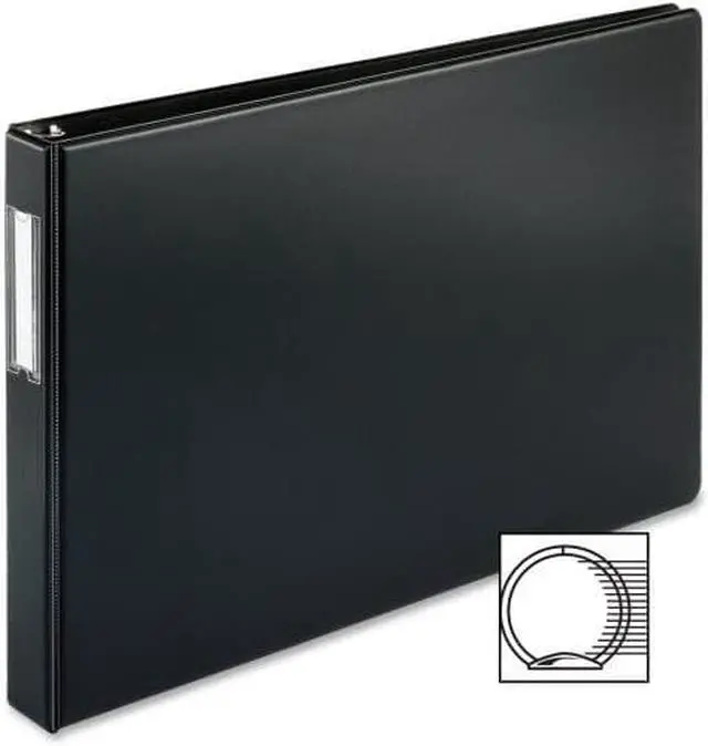 • Round-ring binder with label holder is perfect to store tabloid-size documents. Everyday durability is suited for active projects. Use the clear overlay on the front, back and spine ...