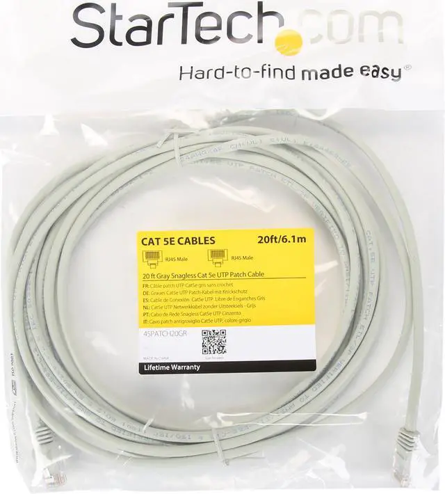StarTech.com 45PATCH20GR 20 ft. Cat 5E Gray Cat. 5E UTP Patch Cable