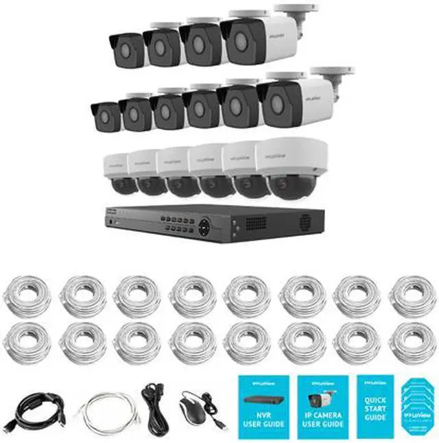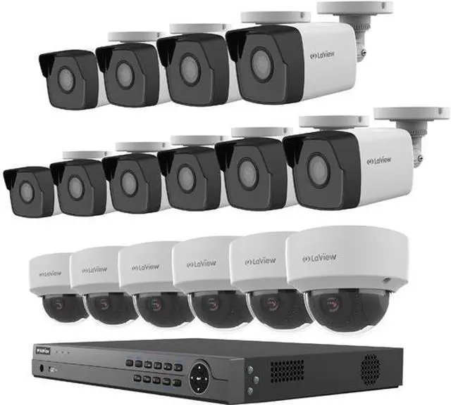This LaView Advanced 4K Surveillance System consists of one 16-channel NVR (Network Video Recorder), 10 x 4MP bullet cameras, and 6 x 4MP Dome cameras.