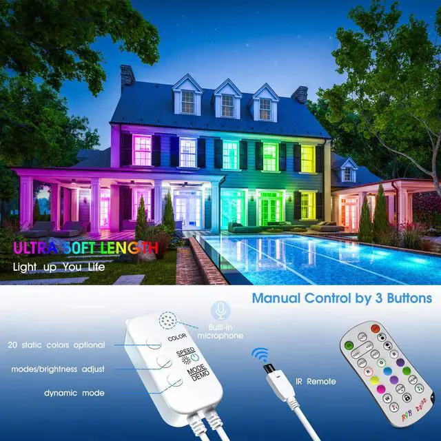 Smart LED lights with 3 ways to control, 3 button cortrol box, 24 key IR remote, and Phone APP. For the Phone APP, You can scan the QR code or search for "LotusLanternX" at App Store (iOS user) or Google Play (Android User).