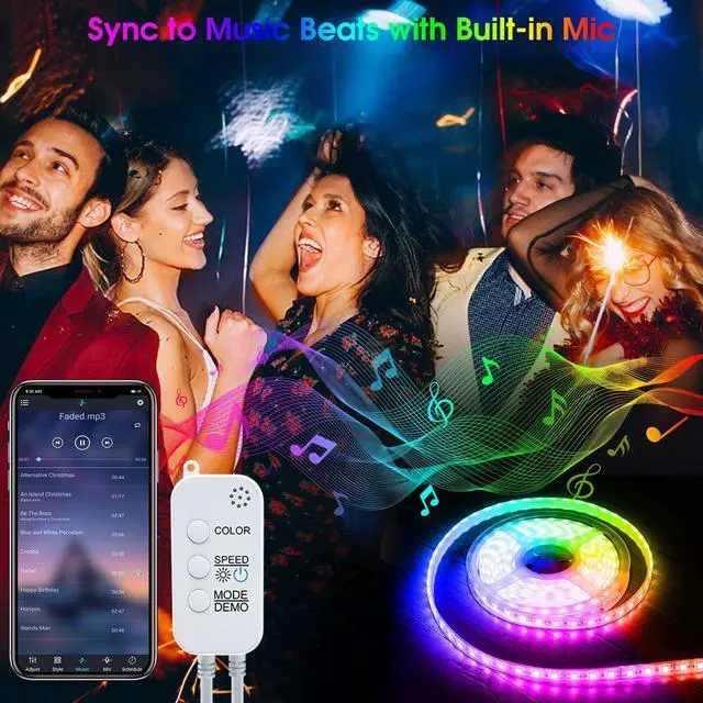The lights can change colors with the music beats because the sensitive built-in mic, you can enjoy your party time at home feels like in the club.