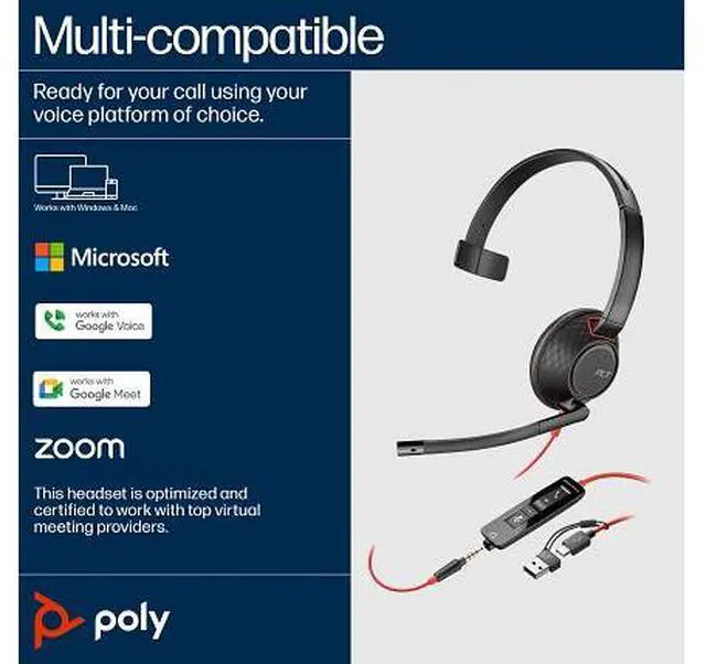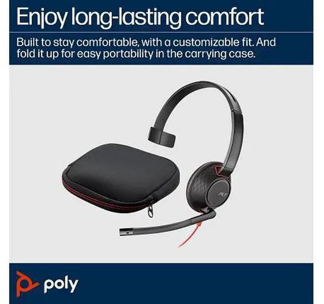 Wear it wellThe Blackwire 5200 Series fits your busy workday. Ergonomically designed for long lasting comfort. And with the easy-to-use connectivity you can work on a variety of devices throughout the day. Get great soundTune out the inevitable workplace distractions with a headset full of features - soft, conforming ear cushions that provide passive noise canceling and a precisely tuned microphone masks nearby conversations. Enjoy long lasting comfortYour ears will thank you, especially after long conference calls. This headset is built to stay comfortable. Adjust it to fit the way you work.