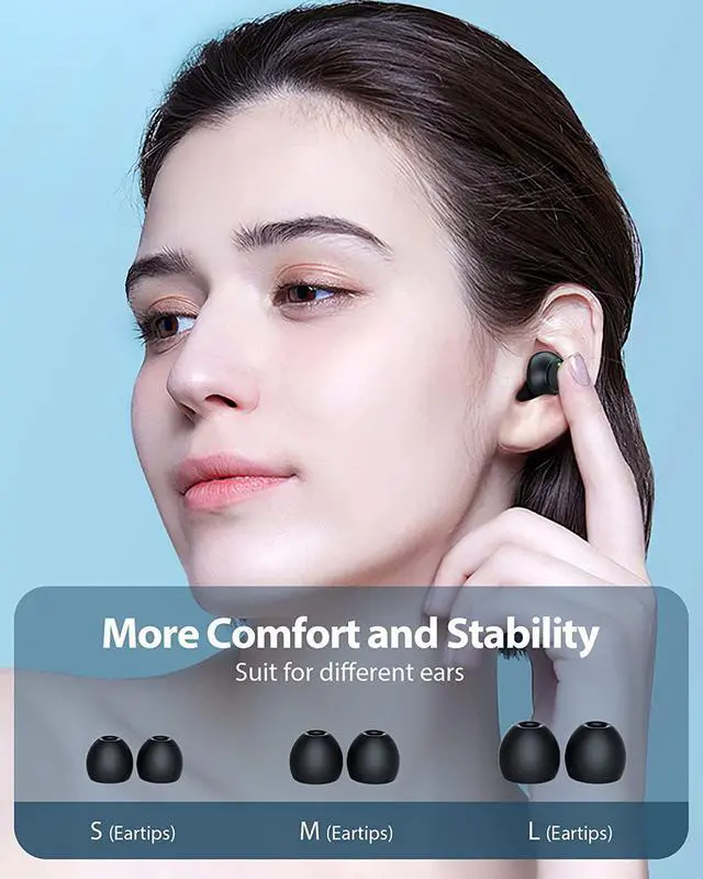 Ergonomic Design & Comfortable: Ergonomically designed for comfort, and wireless earbuds comes with 3 different sizes of soft ear caps that fit perfectly with small, medium and large ear canal.