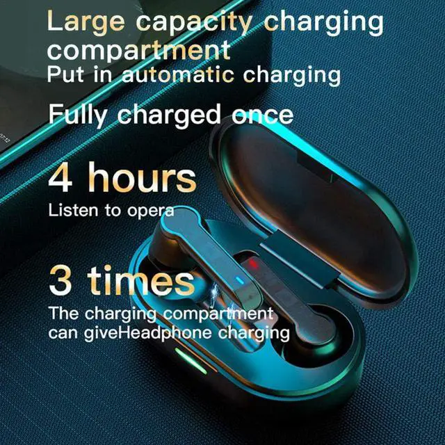 Longer battery life: The latest Bluetooth 5. 0 technology provides stable connection and lower power consumption. It also supports dual stereo calls. Just charge the Bluetooth headset fully, and then they will support you to enjoy 4- 5 hours of music or talk. It comes with a 500mAh portable charging box. Just put the earplugs in the box and the earphones will automatically charge. As long as you bring the box, the total working time will be up to 120 hours.