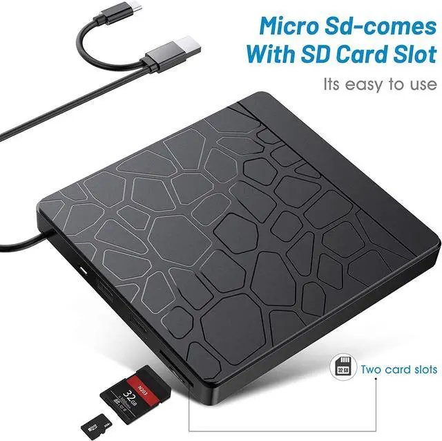 External DVD Drive with SD TF Card Reader & USB-Stick Port
