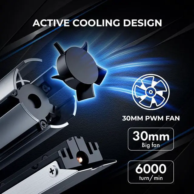 High-speed 30mm fan quickly dissipates heat