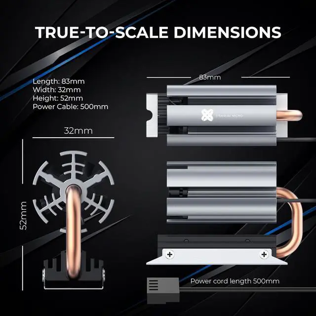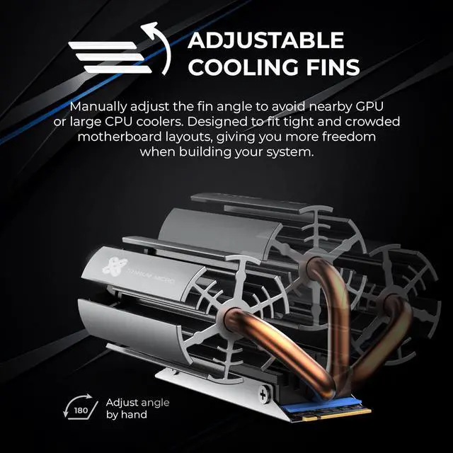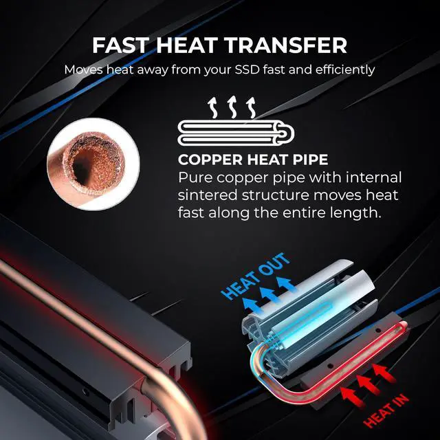 Increase the heat dissipation area, which helps the SSD to have a good heat dissipation effect. Heatsink interval design quickly dissipate the heat conducted by the copper pipe
