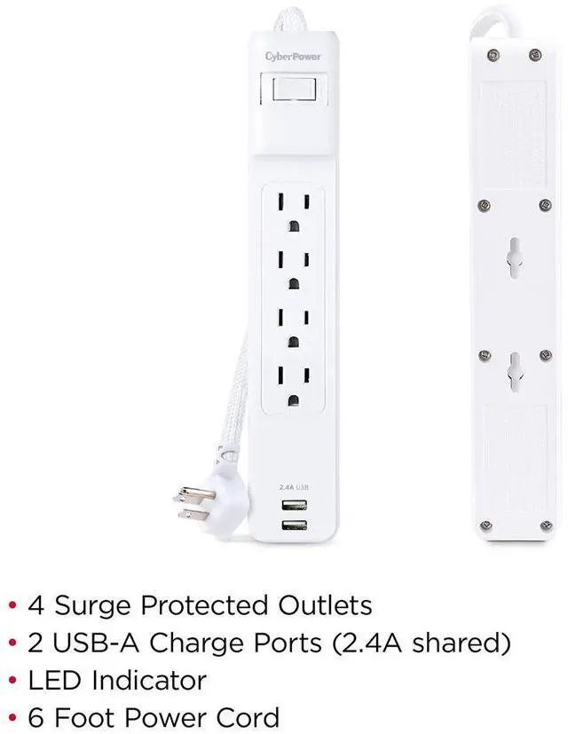 CyberPower P406U Home Office 4 Outlet Surge Protector with 500 J Surge Suppression