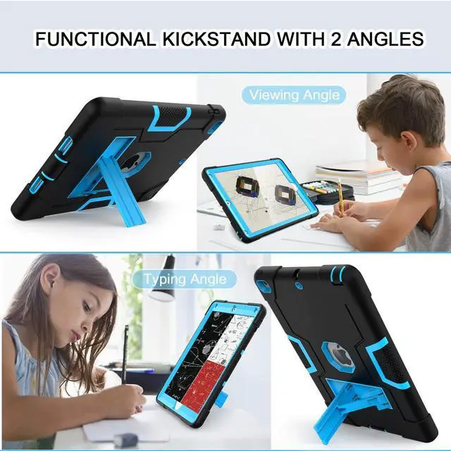 iPad Case with Built-in Kickstand --- The iPad case with built-in sturdy kickstand, offers you 2 angles like viewing and typing when you are playing or working. Free your hands and enjoy your watching or facetime with the iPad case.