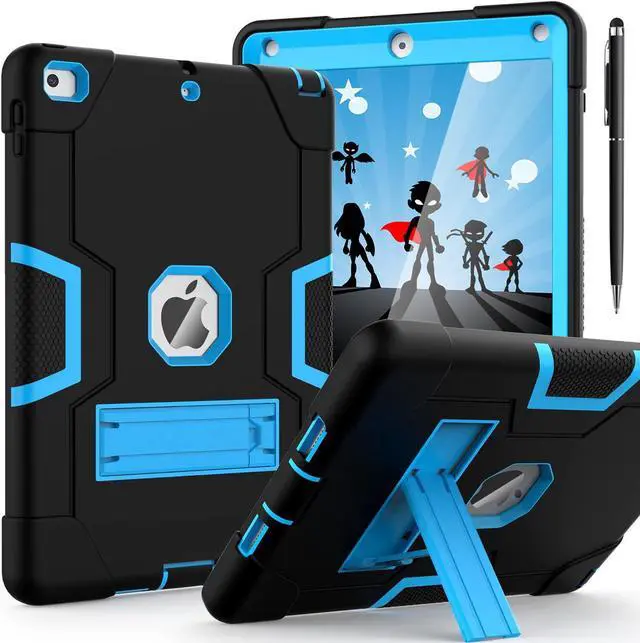 Bonaever Case for iPad 6th/5th Generation 9.7 inch 2018 2017 with Kickstand, Hybrid Shockproof Protective Cover with Stylus Pen Blue