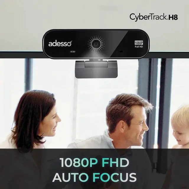 1080P ( 2.0 Megapixel), H. 264, Auto focus Webcam with build in Dual Microphone & Privacy ShutterAdesso's CyberTrack H8 is a 1080P Full HD Resolution Desktop Webcam that allows you to record and share colorful vivid HD quality video with fine detail. This webcam offers you broad Instant Messenger compatibility, so you can enjoy video conferencing with today's most popular Instant Messenger applications. This webcam also includes an integrated wide-angle microphone that lets your voice be heard loud and clear, whether you are chatting with loved ones or doing business on a video call.