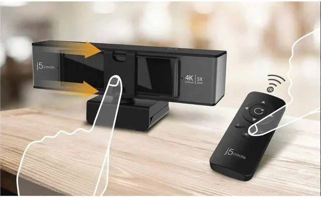 The USB™ 4K ULTRA HD Webcam with 5x Digital Zoom Remote Control offers ePTZ (electronic pan, tilt and zoom) functionality via remote control. It supports 4K resolution @ 30 Hz and optimizes video calls with 5X digital zoom in and zoom out, making it perfect for meetings in large conference rooms and also for single person use. In addition, the webcam has built-in low light enhancement, built-in dual high-fidelity microphones, and two ways to disable the lens for privacy. It is equipped with a USB-C® cable and a USB™ Type-A connector to work with both your older and newer devices.