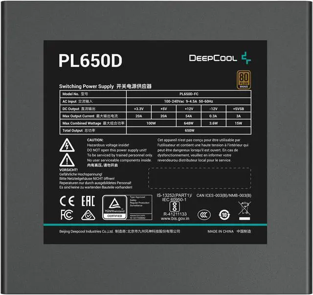 The DEEPCOOL PL650D is a 650W power supply unit designed for modern PC systems. Here's a breakdown of its key features: