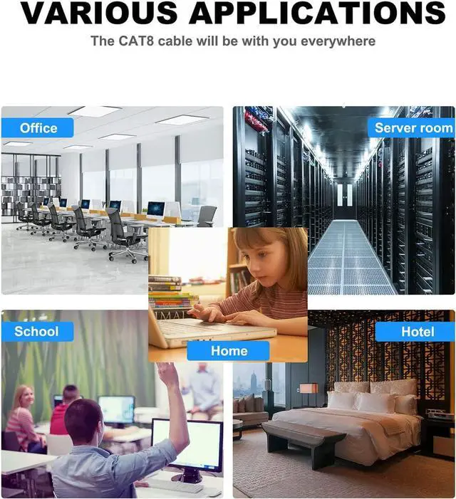 • Universal Compatibility: Cat8 patch cable is fully backward compatible with all the previous(cat5, cat5e, cat6, cat6a and cat7) RJ45 cabling and equipment.