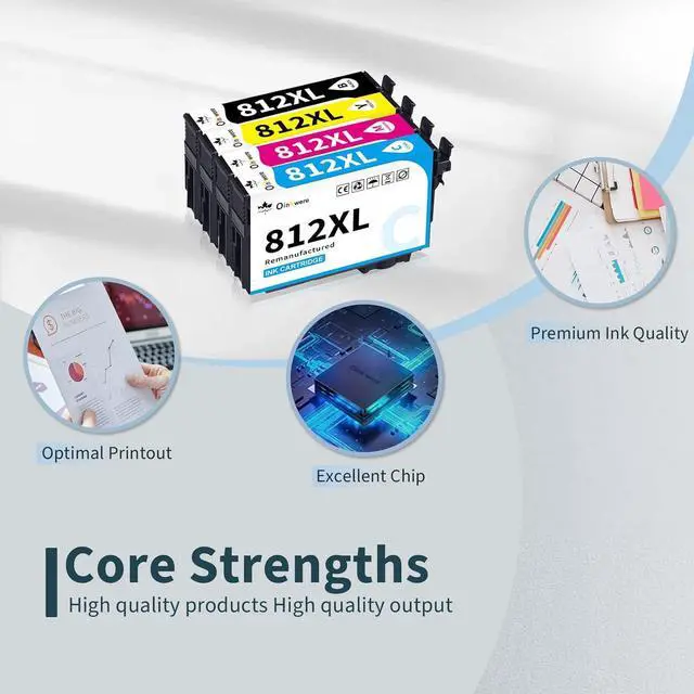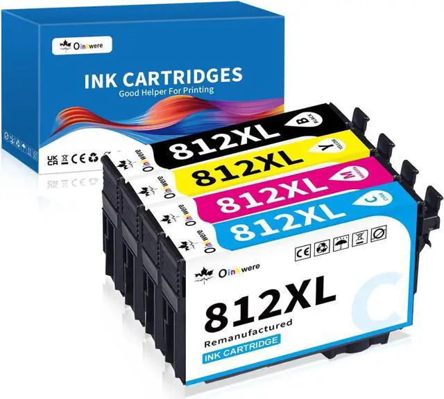 • OINKWERE Remanufactured 812XL ink cartridges replacement for Epson 812 Ink Cartridge. Include1 x 812XL ink cartridge Black , 1 x T812XL Cyan, 1 x T812XL Magenta , 1 x T812 XL Yellow