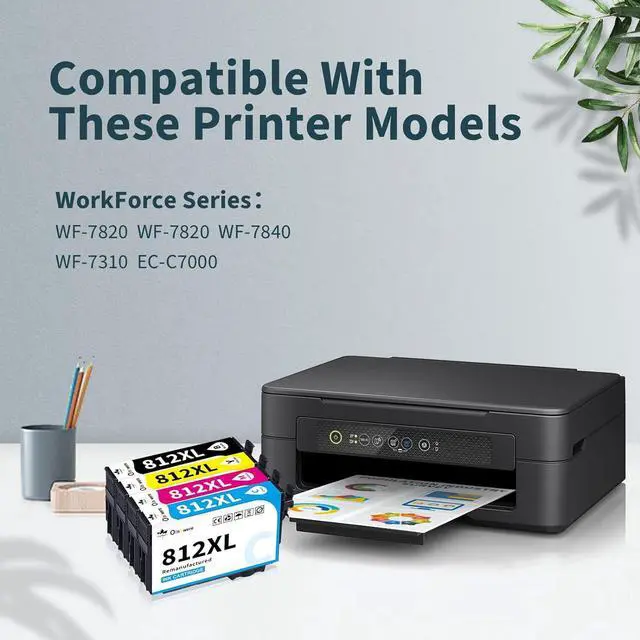 • 812XL ink cartridge combo pack compatible with the following printers: Workforce Pro WF-7820 WF-7840 WF-7310 EC-C7000 Printer