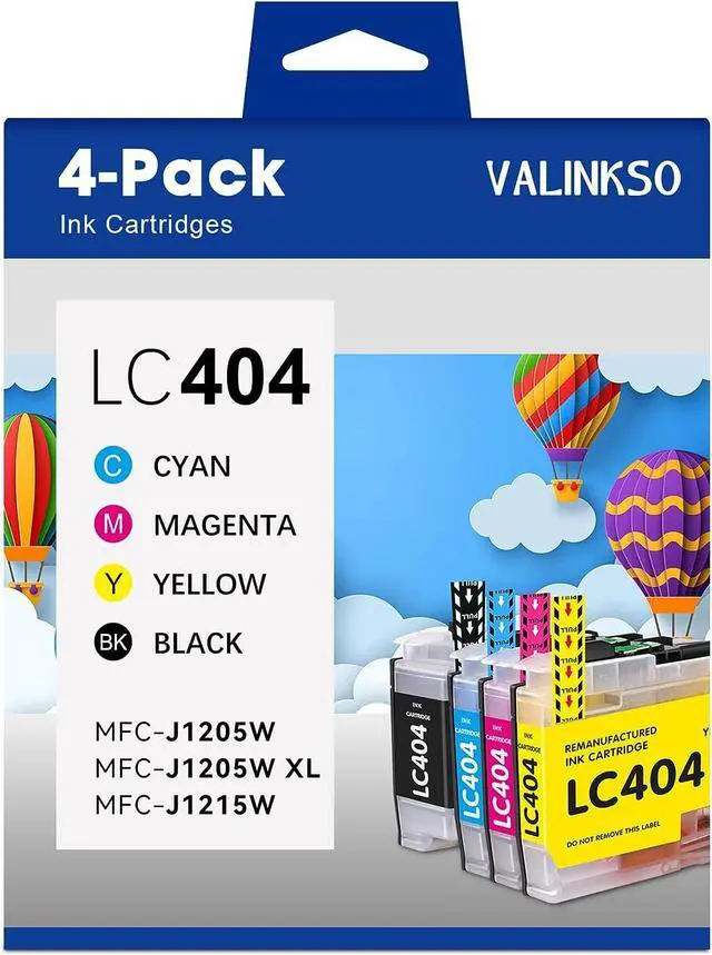 Package Included: LC404 4-Pack standard yield black color ink cartridges replacement for brother LC-404 ink tank. (Includes 1 Cartridge Each of Black,Cyan,Magenta and Yellow)