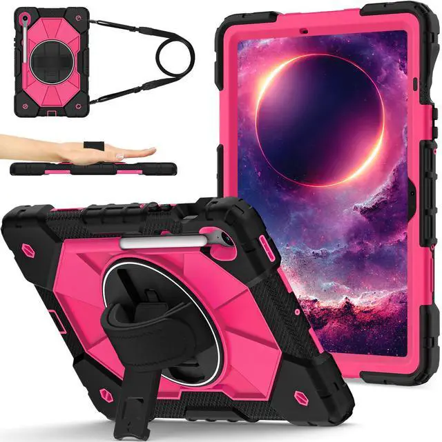 WERLEO Case for Samsung Galaxy Tab S10 Lite S10 FE S9 FE 10.9 inch / S9 11 Inch with Rotating Stand Pencil Holder Hand/Shoulder Strap, Heavy Duty Shockproof Protective Cover Rose Red