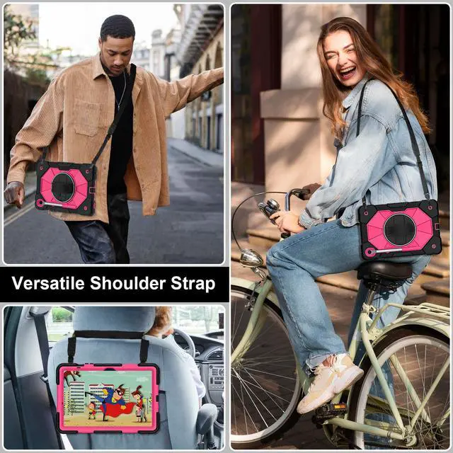Adjustable Shoulder Strap : Adjustable shoulder grip can be slanted and release your hands completely. This function is perfect for traveling, restaurant ordering, home product introduction, engineer outdoor operation, scene of industrial construction,teacher, etc. Also, the strap allows you to hang up your tablet behind car seat for entertainment for kids.