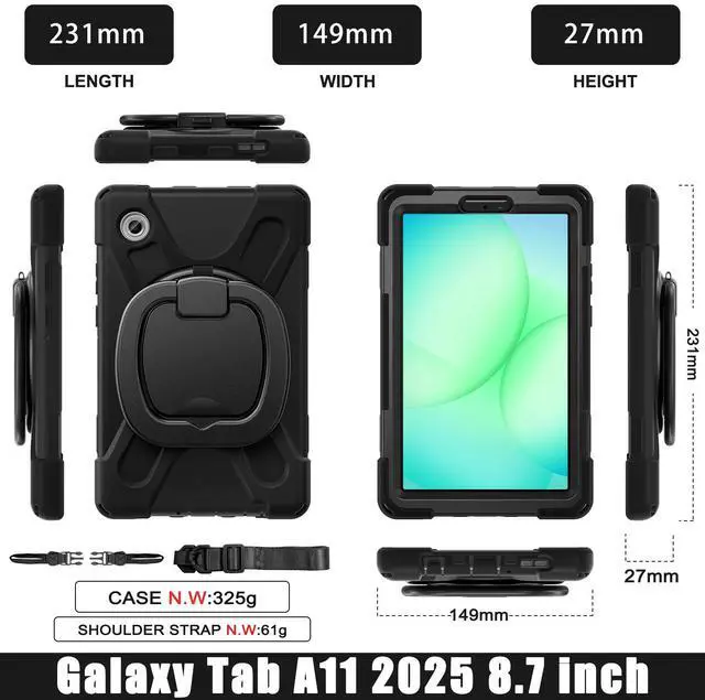 360° Rotating Hand Strap 7 Stand: The Protective Samsung Galaxy Tab A11 8.7" 2025 Case Built-in 360° Rotatable Hand Strap & Kickstand on the back, flexible in Vertical & Horizontal any other angles ideal for watching video, reading or teaching, maximinzely free your hand. Adjustable Hand Strap perfectly suitable uses for all size of hands, adults, students, child