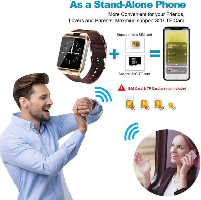 Support calls through Bluetooth or smart watch. When you insert a SIM card, just like a GSM cell phone, you can make a call / answer call / dial call directly from the Smart Watch