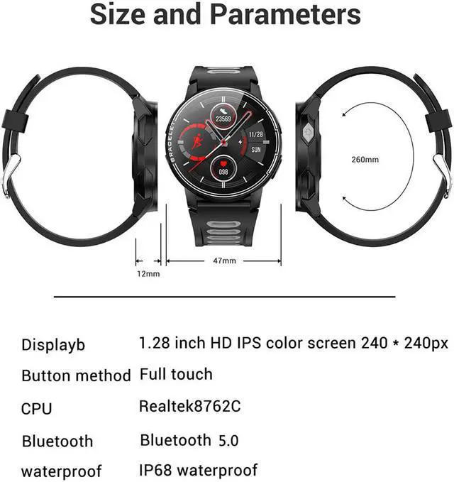 Sports Smart Watch 1.3 Inch Full Touch Screen Watch IP68 Waterproof Men Women Fitness Tracker 360mAh Big Battery 60 days Long Standby Bluetooth Watch Silicone Strap SmartWatch for Android IOS