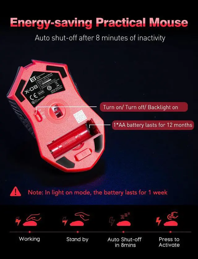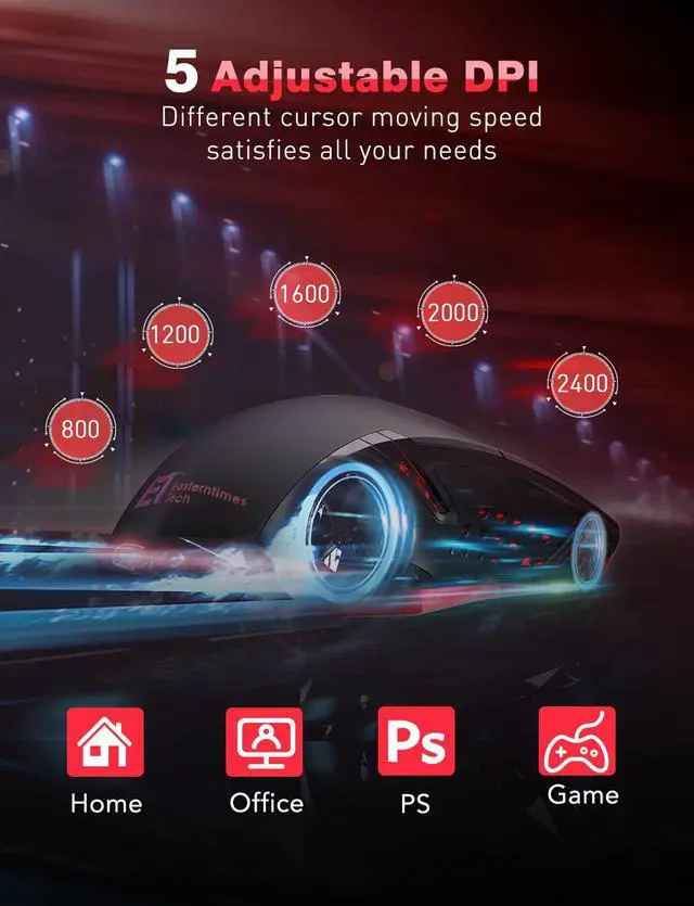 No need any driver, plug and play. 5 adjustable DPI level ( 800, 1200, 1600, 2000, 2400) to change the speed of mouse freely. Two side keys can be customized by software.