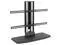 Universal tabletop stand with a black base fits most 32" to 50" LCD / plasma displays. Adjustable mounting arms can be positioned anywhere along vertical chrome posts so you can achieve the perfect viewing height.
