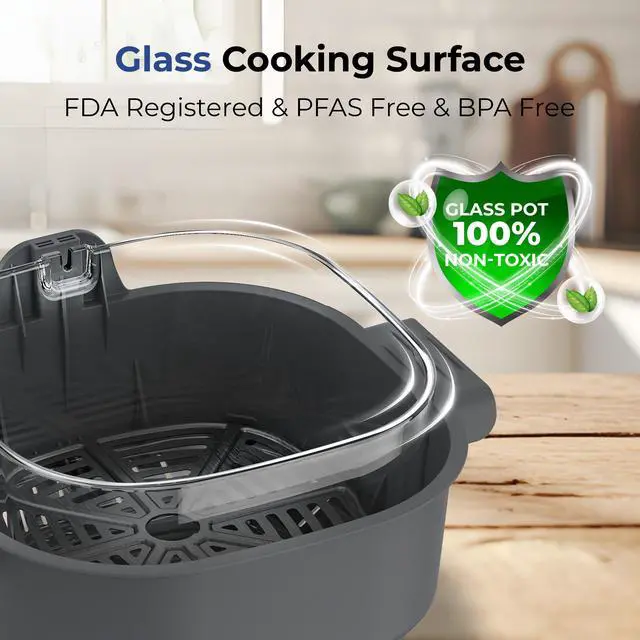 360° Hot Air Circulation Technology 4.7QT Transparent Glass Design for Precision Cooking 4 in 1 Functionality Easy-Clean & Non-Toxic Materials |
