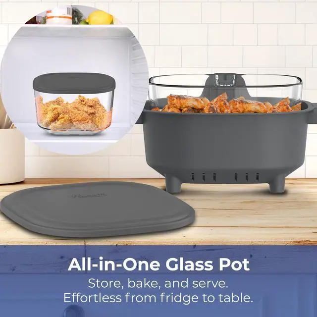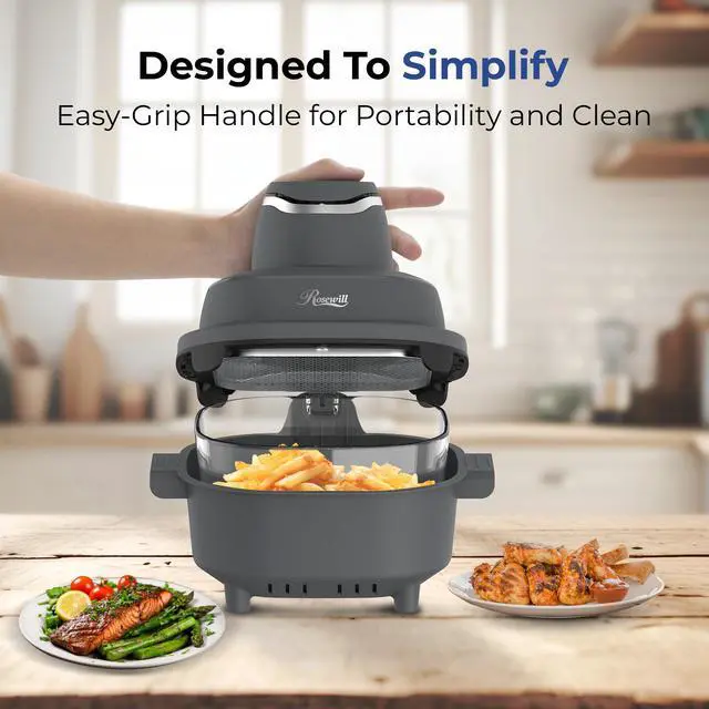 Feature| Features | Rosewill 4 in 1 Portable Glass Air Fryer, 1500W with Viewing Glass Pot, Dark Gray, RHAF-25001DG