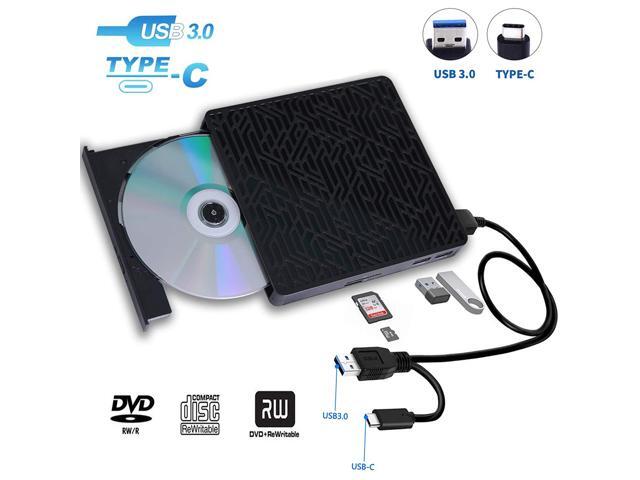 External DVD CD Drive, USB 3.0 Type-C Portable CD/DVD ROM +/-RW Drive/DVD Player Rewriter Burner with 2 USB, SD/TF Port, Micro USB, Compatible with Laptop Desktop PC Windows Apple Mac