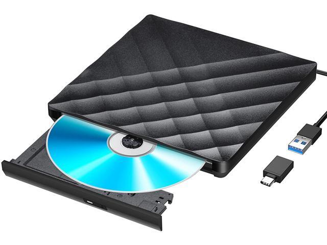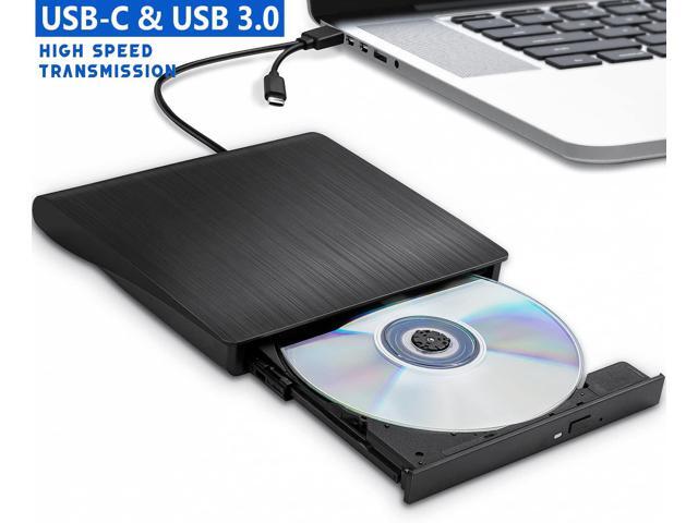 External CD DVD Drive, Portable High-Speed USB-C & USB 3.0 CD/DVD ROM DVD Burner/DVD Reader Writer Optical Drive for PC Desktops, Compatible with Windows/Mac OS X/Linux