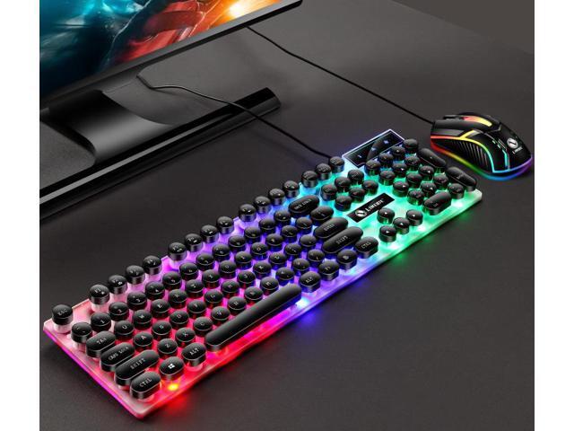 Rainbow LED Backlit Multimedia Ergonomic Usb Gaming Keyboard with a Phone Stand and Lighter Stand + Gaming Mouse for Laptop Computer