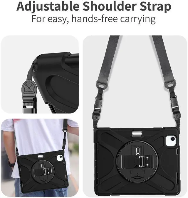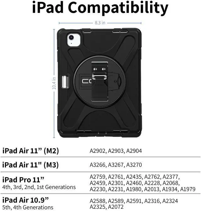 CODi Rugged Case for iPad Air 11” (M2, M3), iPad Pro 11” (1st–4th Gen) & iPad Air 10.9” (4th & 5th Gen) with Kickstand and Hand/Shoulder Strap