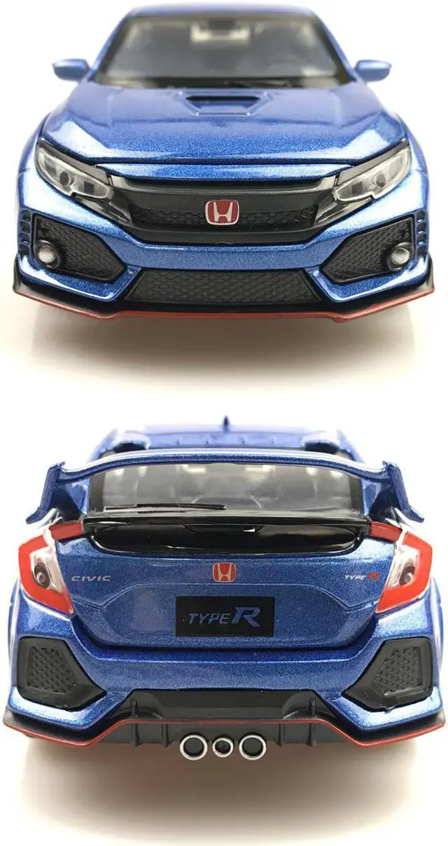 You are watching very nice made 1:32 Scale Diecast of Civic Type R - by MiniAuto. When push down the car, there will be engine voice and drifting sound, together with the front light and backlights flashing. The doors, front and back hoods are openable. It's brand new in box, and come with a display base. Four Color Available: Black/Blue/Red/White