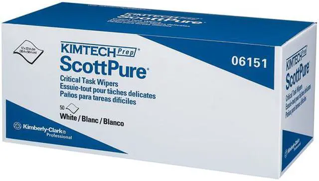 When you have wiping jobs where precision and reliability are essential, you can trust Kimtech Prep Scottpure Wipers. They are up to the task! These critical task wipers are engineered for excellent absorbency and low-lint wiping. Kimtech Prep Scotpure Wipers have low extractables (no binders or surfactants) and designed to work well with solvents (acid-, base- and solvent-resistant). They are made of low lint 100% rayon / polyester material (called spunlace) for cloth-like softness. These critical task wipes are popular for applications including clean manufacturing areas, printing and much more.