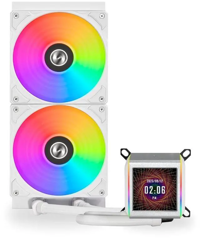 Powered by Asetek’s Gen8 technology. Include a 2.88" LCD screen with 480x480 resolution that can be customized with RGB lighting effects. 45-degree tubing connector that enables 360-degree rotation of tubes.