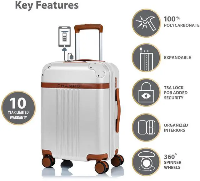 CHAMPS Vintage Collection Hardside Carry-on Ivory S1016CIVORY